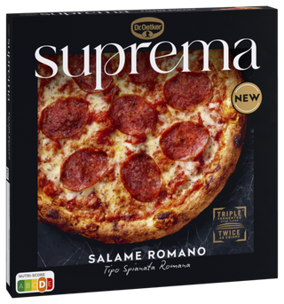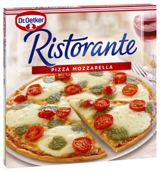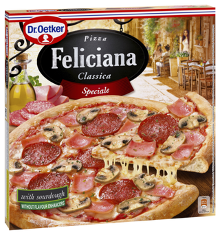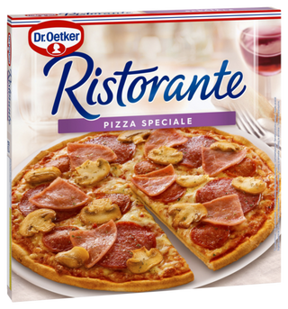 Pica Guseppe ar šķiņķi un sēnēm, ātri sasaldēta.