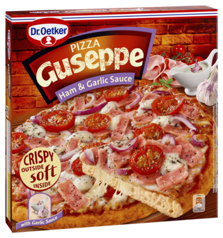 Pica Guseppe ar šķiņķi un ķiploku mērci, ātri sasaldēta.